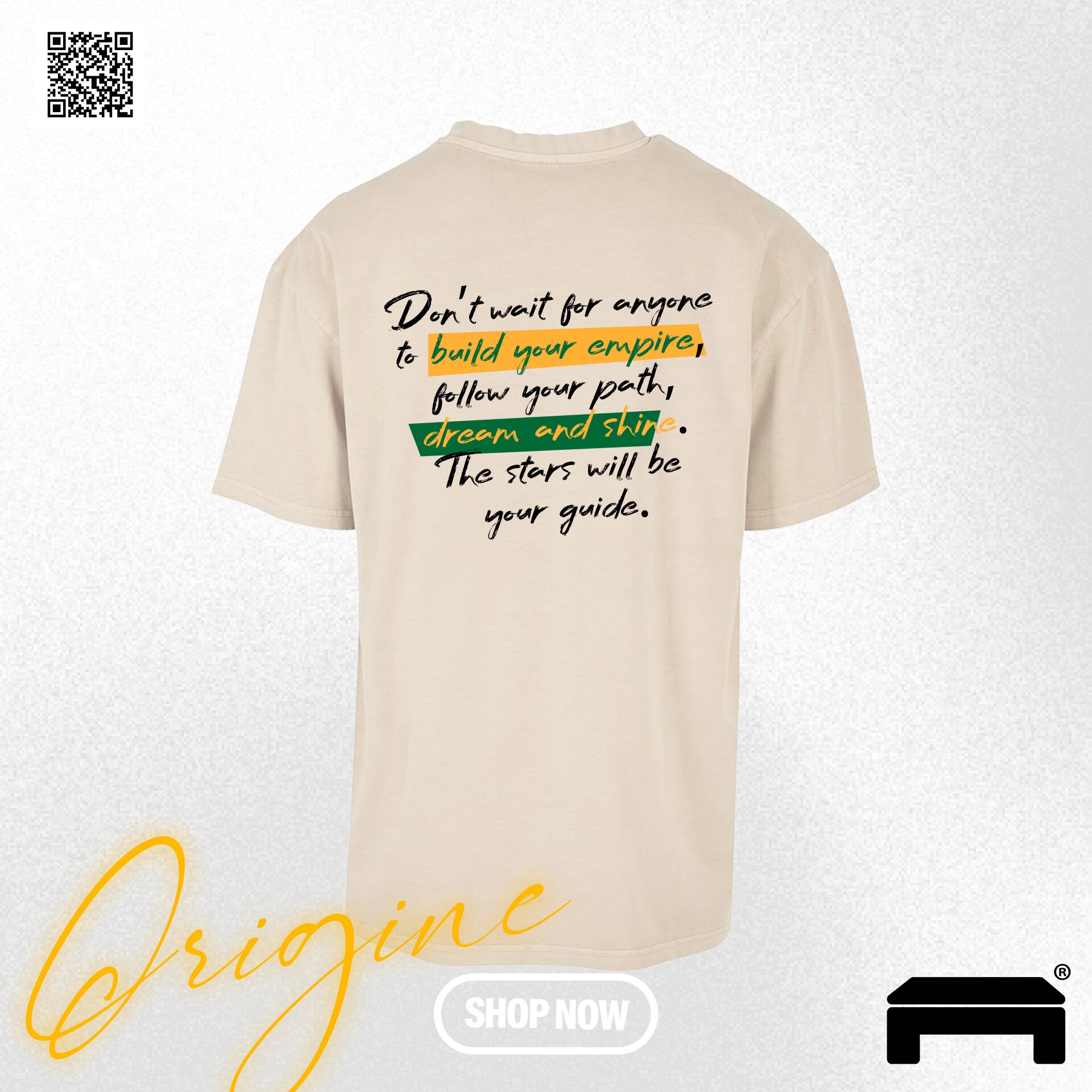 T-shirt "Origine" : Le commencement est en toi. N’attends pas qu’un signe extérieur vienne valider ton rêve, c’est toi qui en es l’origine. Ce t-shirt incarne la puissance de ceux qui prennent les devants, ceux qui créent leur propre chemin sans chercher l’approbation de l’extérieur. La réussite commence par l’action.
